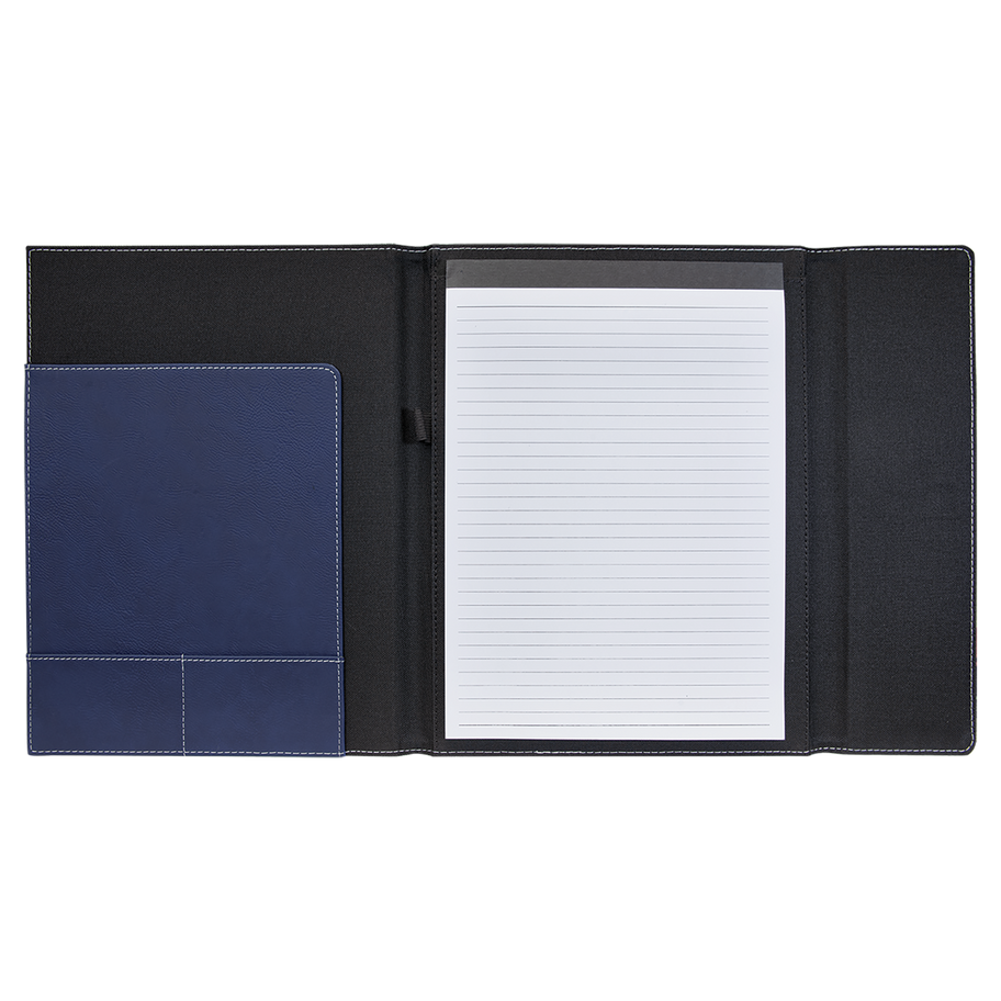 Blue/Silver Laserable Leatherette / Black Canvas Portfolio w/Notepad